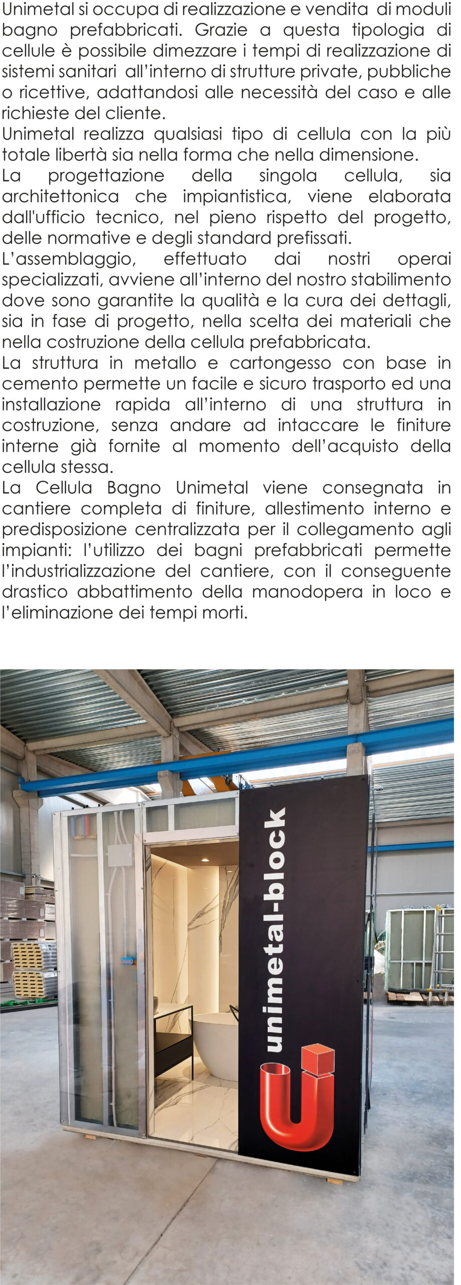 Realizzazione e vendita moduli bagno prefabbricati che contribuiscono a dimezzare i tempi di realizzazione di sistemi sanitari all’interno di strutture private, pubbliche o ricettive, adattandosi alle necessità del caso e alle richieste del cliente. Per maggiori informazioni CLICCA QUI